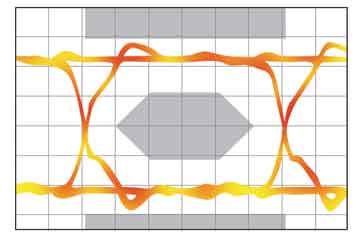 采用硅ESD保護(hù)元件在2.25GHz時(shí)的眼圖如圖9所示,而采用PESD元件在3.4GHz時(shí)的眼圖如圖10所示,這兩圖的比較說(shuō)明了PESD的優(yōu)良性能。