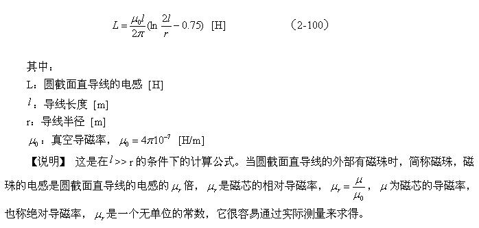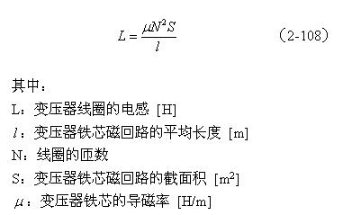 【說明】上式是用來計算變壓器線圈電感的計算公式。由于變壓器鐵芯的磁回路基本是封閉的,變壓器鐵芯的平均導(dǎo)磁率相對來說比較大。鐵芯的導(dǎo)磁率一般在產(chǎn)品技術(shù)手冊中都會給出,但由于大多數(shù)開關(guān)電源變壓器的鐵芯都留有氣隙,留有氣隙的磁回路會出現(xiàn)磁場強(qiáng)度以及磁感應(yīng)強(qiáng)度分布不均勻,因此,(2-108)式中的導(dǎo)磁率只能使用平均導(dǎo)磁率,技術(shù)手冊中的數(shù)據(jù)不能直接使用。
