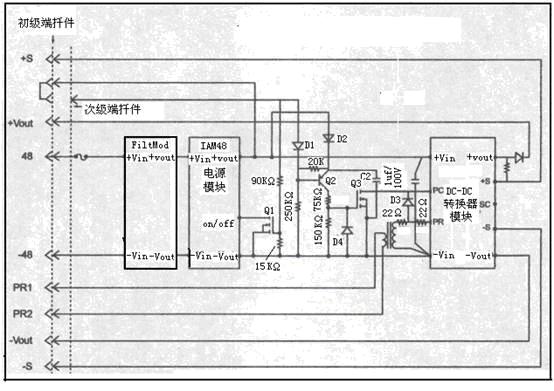 當48V母線關斷時,母線上的保持電容可通過并聯(lián)開關迅速放電。除了通斷控制功能外,IAM48模塊還具有限制浪捅電流的功能,并且與FiltMod模塊或EMI濾波器模塊配合,還可完成瞬變過電壓保護.通信設備中為了滿足EMC{電磁兼容)標準,通常都采用IAM48和FitMod模塊(見圖1中FitMod模塊與IAM48模塊的連接)。在通信設備中,都要求電源模塊具有熱插拔功能,因此應選用lAM48電源模塊或其他可限制浪涌電流的模塊。
