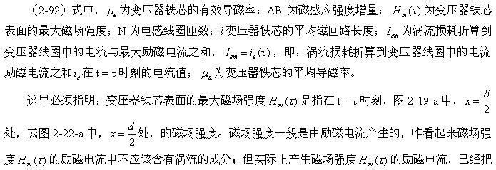因?yàn)椋绻麤]有渦流損耗,變壓器鐵芯中的磁場(chǎng)強(qiáng)度基本上只達(dá)到圖2-19-a或圖2-22-a中的平均值Ha, ;由于渦流損耗,勵(lì)磁電流必須額外提供一部分電流來抵消渦流產(chǎn)生的磁場(chǎng)的作用;在變壓器鐵芯的中心,渦流產(chǎn)生的磁場(chǎng)強(qiáng)度最高,