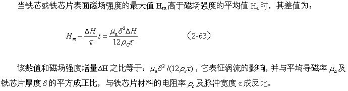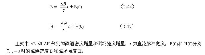 在圖2-19-b中,隨著時間線性增長部分是變壓器初級線圈勵磁電流產(chǎn)生的磁場;Hb是為了補(bǔ)償渦流產(chǎn)生的去磁場,而由變壓器初級線圈另外提供電流所產(chǎn)生的磁場。