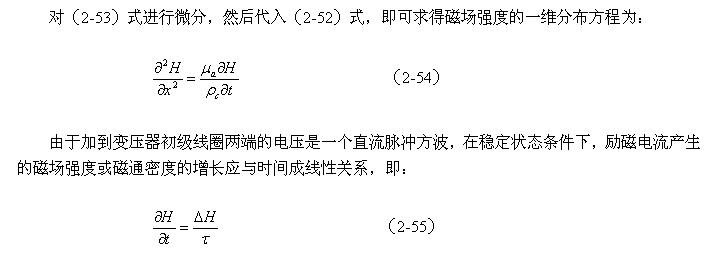 當(dāng)有一個直流脈沖電壓加到變壓器初級線圈的兩端時,在變壓器初級線圈中就就有勵磁電流通過,并在變壓器鐵芯中產(chǎn)生磁場強(qiáng)度H和磁通密度B,兩者由下式?jīng)Q定: