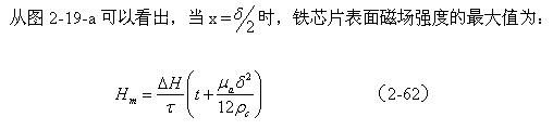 從圖2-19-a中可以看出,由于渦流產(chǎn)生反磁化作用的緣故,在鐵芯或鐵芯片中心磁場強(qiáng)度最低邊緣磁場強(qiáng)度最高。
