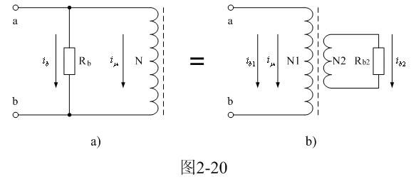 圖2-20-a中,Rb為渦流損耗等效電阻,N為變壓器初級線圈。由此可以看處,由于受渦流損耗的影響,變壓器鐵芯被磁化時,相當(dāng)于一個渦流損耗等效電阻Rb與變壓器初級線圈N并聯(lián)。