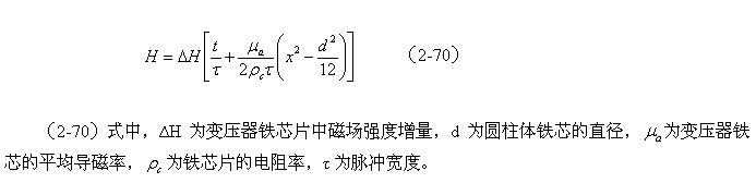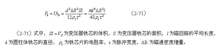 或者,圓柱體變壓器鐵芯的渦流損耗,與磁感強(qiáng)度增量以及鐵芯直徑的四次方成正比,與電阻率及脈沖寬度的平方成反比。