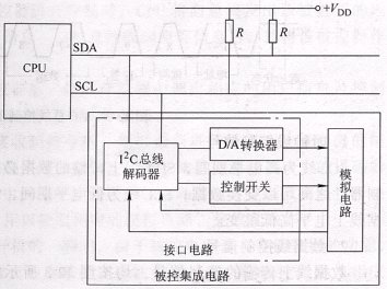 掛接在I2C總線上的受控集成電路大多屬于模擬電路,而受控集成電路中的I2C總線接口電路則屬于數(shù)字電路。為避免數(shù)字電路與模擬電路之間的互相干擾,常為數(shù)字電路與模擬電路設(shè)置單獨(dú)的供電端子,即設(shè)置I2C總線接口電路專用電源端子(或數(shù)字電路電源引腳)。如果I2C總線接口電源端子沒(méi)有電壓,則這塊集成電路不能正常工作。