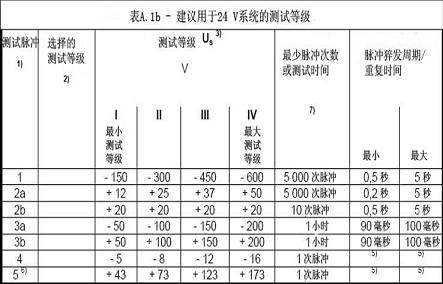 ISO-7637-2:2004標(biāo)準(zhǔn)指定測(cè)試了客車以及安裝12V或24V電氣系統(tǒng)的商用車輛中設(shè)備的電瞬態(tài)傳導(dǎo)的兼容性。抗瞬態(tài)失效程度的等級(jí)也有定義。該標(biāo)準(zhǔn)適用于所有安裝電氣系統(tǒng)的道路車輛,不受推進(jìn)模式的約束。