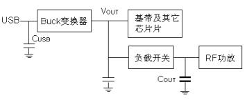 射頻模塊工作于CDMA/WCDMA時,發(fā)射的峰均比值即峰值功率與平均功率的比值小,負(fù)載脈動小。射頻模塊工作于GSM、GPRS等模式時,發(fā)射的峰均比值大,瞬態(tài)峰值電流值很大,因此負(fù)載脈動大。