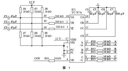 可控硅及移觸發(fā)電路部分TC787芯片的基本連接如圖1所示。