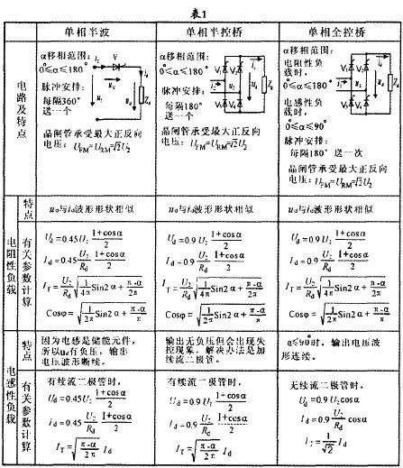 從表1中可見,對(duì)于單相整流電路當(dāng)晶閘管的控制角α>0°時(shí),ud的波形就不連續(xù),只有單相全控橋電感性負(fù)載,α>90°時(shí),ud的波形不連續(xù)。同樣從表2可見,對(duì)于三相整流電路,三相半波電路是以α=30°。作為輸出電壓波形連續(xù)與否的分界點(diǎn);而三相橋式整流電路(包括半控橋和全控橋)均是以α=60°作為輸出電壓波形連續(xù)與否的分界點(diǎn)。