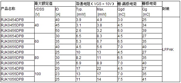 新型功率MOSFET采用瑞薩得到普遍認(rèn)可的LFPAK(瑞薩科技公司封裝編號)*4高性能封裝。它提供了低封裝電阻和出色的散熱特性,能夠防止元件出現(xiàn)過熱的情況。與傳統(tǒng)的SOP-8或類似的封裝相比,該封裝本身就為產(chǎn)品實現(xiàn)了低損耗。從內(nèi)部直接連接到導(dǎo)線框上,從而降低了封裝電感,保證了高頻操作的實現(xiàn)。