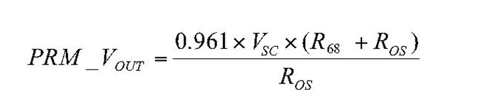 SC電壓經(jīng)緩沖后通過電阻分壓器反饋給誤差放大器,其中電阻分壓器被表示為0.961的增益塊。R68形成了電壓檢測(cè)電阻分壓器的上半部分。這個(gè)電阻對(duì)每個(gè)PRM來說都是固定的。分壓器的下半部分是通過在OS引腳和SG(ROS)之間增加一個(gè)電阻形成的。公式1將PRM輸出定義為VSC和ROS的函數(shù)。從公式1可以看出,對(duì)于給定的ROS電阻,調(diào)整SC電壓可以確定PRM輸出電壓。這就是外部電流控制電路控制輸出所采用的方法。