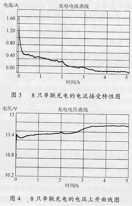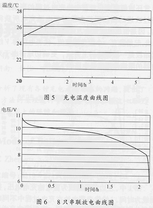 為進(jìn)一步說明,特提供一組用我們?cè)O(shè)計(jì)的充電器,對(duì)市場(chǎng)上某品牌鎳氫電池(Ni-HM)5號(hào)1300mA•h,8只串聯(lián)充放電結(jié)果的打印曲線(環(huán)境溫度為25℃)如圖3~圖6所示。從這一組電池的充電電流接受曲線、充電電壓上升曲線、電池溫度變化曲線、0.5C恒流放電曲線可以看到,整個(gè)充電過程,電池溫升很小,不超過3~4℃,充滿電的時(shí)間,從標(biāo)準(zhǔn)的14~15h,縮短為3~4.5h。由于整個(gè)充電過程電池溫升很小,所以,不需要進(jìn)行任何的人為干預(yù)。信息請(qǐng)登陸:輸配電設(shè)備網(wǎng)
