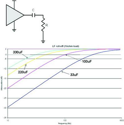 圖1采用不同容值的隔直電容時(shí)形成的高通濾波器頻響