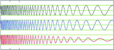 去掉隔直電容除了能夠消除爆破音,另一個(gè)好處是耳機(jī)低頻輸出也得到了很大的改善,圖5所示為一個(gè)掃頻信號(hào)經(jīng)過內(nèi)部產(chǎn)生負(fù)電源的耳機(jī)驅(qū)動(dòng)器后的波形和經(jīng)過隔直電容后的波形對(duì)比。