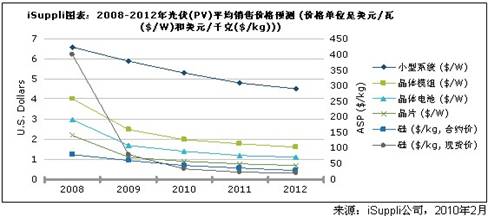 2010年將保持這種趨勢,盡管價(jià)格下跌速度可能減慢。晶體組件價(jià)格將下降20%,晶片價(jià)格將下滑18.2%,多晶硅將下跌56.3%。