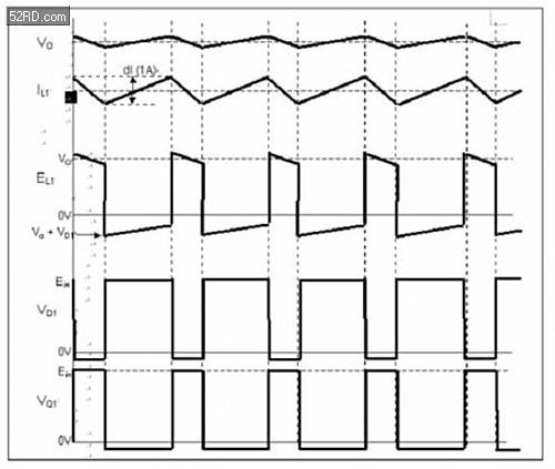 圖2采用降壓拓?fù)浣Y(jié)構(gòu)的開關(guān)電源的開關(guān)動作波形圖