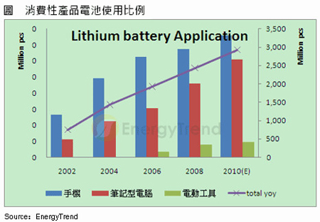 消費性產品的發(fā)展趨勢迅速牽動電池產業(yè),根據(jù)集邦科技(TrendForce)旗下研究部門 EnergyTrend 表示,鋰電池隨著量產數(shù)量增加,價格與性能也逐漸為消費者所接受,包括手機電池與 NB 電池,也以鋰電池為使用主流,而伴隨著新材料的革新,動力鋰電池也成功在電動工具以及兩輪車輛上嶄露頭角,讓鋰電池突破僅有消費性產品的應用局限。