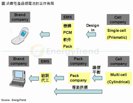 以產品發(fā)展競爭來看,EnergyTrend表示,手機以及筆記本電腦一直是鋰電池的最大戰(zhàn)場,但也因為產業(yè)平衡的關系而產生出不同的合作模式。以手機電池來說,中端與低端產品市場,大多以價格為考量,也因此將使得產品定位陷入品質與價格之間的掙扎,而高價位產品,則必須藉由在產品設計初期的共同發(fā)展,來設法讓零組件產品確保切入供應鏈,包括正崴等手機電池廠即為一例。