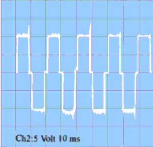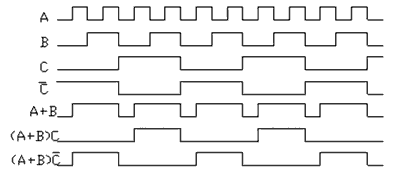 由14級(jí)串行二進(jìn)制計(jì)數(shù)/分配器CD4020B構(gòu)成分頻電路,分頻信號(hào)來(lái)自SG3525A的振蕩器輸出端引腳4。圖4中的A、B、C分別代表振蕩器脈沖經(jīng)8、9、10級(jí)分頻后的波形,其頻率分別為fA=fOSC/28,fB="fOSC/29",fC="fOSC/210"。分相電路由單片兩輸入端四與非門CD4011BC及外圍器件組成,將信號(hào)ABC邏輯組合成逆變橋所需要的驅(qū)動(dòng)脈沖(A+B)C與(A+B)C信號(hào)。該驅(qū)動(dòng)信號(hào)具有共同死區(qū),信號(hào)頻率約為50Hz。