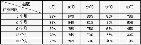 表2:蓄電池存放時(shí)間與環(huán)境溫度對(duì)容量的影響