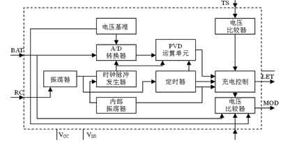 首先,由振蕩器和內(nèi)部振蕩器共同作用到時(shí)鐘脈沖發(fā)生器,產(chǎn)生時(shí)鐘信號,用來控制D/A轉(zhuǎn)換、-ΔV運(yùn)算器及其他有關(guān)單元電路,并使之同步工作。該充電芯片在中斷充電電流期間進(jìn)行采樣,以求采樣的精確。采樣電壓從腳4(BAT)進(jìn)入電路內(nèi)部,經(jīng)A/D轉(zhuǎn)換后送入-ΔV運(yùn)算器處理,并將運(yùn)算結(jié)果送入充電控制單元,隨時(shí)控制充電過程。