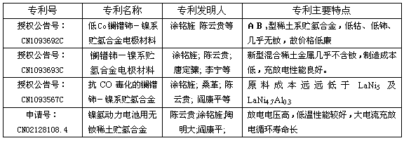 在涂銘旌院士帶領(lǐng)下,之前四川大學(xué)材料學(xué)院的博士生導(dǎo)師陳云貴教授主持完成了無釹鎳氫動(dòng)力電池的開發(fā),其綜合性能在國(guó)內(nèi)外主要品牌電池的對(duì)抗試驗(yàn)中處于領(lǐng)先,獲得了四項(xiàng)國(guó)家發(fā)明專利授權(quán)和2003年中國(guó)稀土十大科技新聞之一的榮譽(yù)。涂銘旌院士和陳云貴教授正在積極推廣此性能優(yōu)良的寬溫區(qū)鎳氫電池,展開飛機(jī)用低溫大電流放電性能優(yōu)良的鎳氫啟動(dòng)電源和電動(dòng)汽車用寬溫區(qū)、長(zhǎng)壽命及低成本鎳氫電池的開發(fā)。