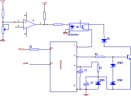 比較器A的第二腳接變壓器原邊電流轉(zhuǎn)換的電壓值,O1為快速光電耦合器HCPL4504,其輸出三極管與快恢復(fù)二極管相串聯(lián),當(dāng)變壓器原邊電流沒有超過設(shè)定的閾值時,無集中過流信號,此時光耦的輸入側(cè)二極管處于導(dǎo)通狀態(tài),在分散過流檢測通道中串入的光耦不會影響分散過流保護(hù)功能,當(dāng)變壓器原邊電流超過設(shè)定的閾值時,產(chǎn)生集中過流信號,此時光耦的輸入側(cè)二極管迅速關(guān)斷,快速光耦的輸出側(cè)三極管迅速關(guān)斷,M57962的1腳將懸空,此時IGBT如果仍處于導(dǎo)通狀態(tài),則驅(qū)動模塊內(nèi)部的過流保護(hù)電路就會動作,對IGBT實施軟關(guān)斷保護(hù)。這樣,不論分散過流保護(hù),還是集中過流保護(hù),都能對IGBT實施軟關(guān)斷保護(hù),防止過大的關(guān)斷電壓對IGBT造成損壞。