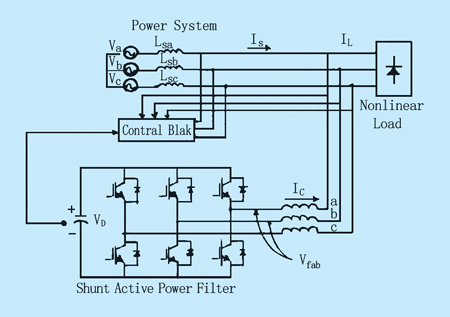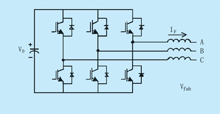 APF是抑制電網(wǎng)諧波和補償無功功率、改善電網(wǎng)供電質(zhì)量的最有效PE裝置。大多數(shù)APF拓撲均利用電壓源逆變器,并通常以電容器作為貯能器件如圖1所示。以適當選通可控的功率半導體開關(guān),把直流電壓變換成交流電壓。雖然,為合成交流電壓能施加每半周的單脈沖,但對大部分應(yīng)用中要求的動態(tài)性能,今天普遍采用的是脈寬調(diào)制(PWM)。