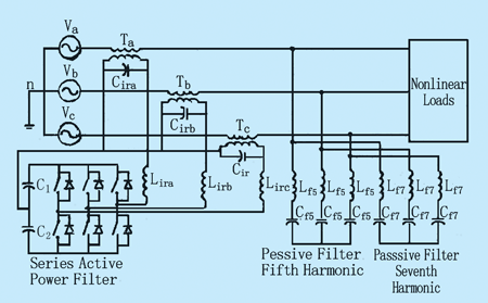 圖7帶并聯(lián)無源濾波器的串聯(lián)型APF拓撲
