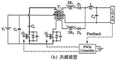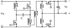 另外,如圖3所示,在采用絕緣變壓器的場合,研究人員還提出了將有源鉗位電路嵌入推挽式轉(zhuǎn)換器中的方案,可在采用48V輸入和1.2V/70A輸出的條件下實現(xiàn)高達91%的效率。上面講到的幾種電路方式基本上都是一段式結(jié)構(gòu),最近,出于進一步提高效率的考慮,人們正在加緊研發(fā)兩段式結(jié)構(gòu)的轉(zhuǎn)換器。就普通的轉(zhuǎn)換器而言,采用兩段式結(jié)構(gòu)將導致效率下降是人所共知的常識,然而,在低電壓大電流轉(zhuǎn)換器中,對輸出進行同步整流是很普遍的做法,因此,如何實現(xiàn)同步整流操作的高效化便成為了關鍵所在。