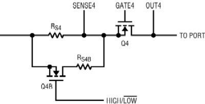當(dāng)Q4B關(guān)閉的時候,端口工作在符合802.3af標(biāo)準(zhǔn)的模式。打開Q4B開關(guān),端口就工作在大電流模式。這種切換可以在任何時間進行:在檢測/分類之前;在檢測/分類之后,但是要在端口上電之前;或在供電之后。注意,Q4B可以采用低壓MOSFET,因為僅僅Q4的漏極具有高端口電壓。Q4B要選擇導(dǎo)通電阻非常低的MOSFET,以防止在更大電流限制中精度不夠。例如,IRLML2502就是采用SOT-23封裝的一種合適的器件。