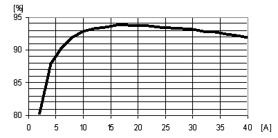 40A的數(shù)字設(shè)計(jì)專(zhuān)為大電流作了優(yōu)化,這反映在圖5中15-30A范圍內(nèi)的效率性能曲線上。當(dāng)輸出電流低于10A時(shí),它包括了18A模擬設(shè)計(jì)的可用工作范圍的絕大部分,其效率要比模擬POL穩(wěn)壓器略微低一些,這是由于較高的開(kāi)關(guān)損耗所致。但在半負(fù)載點(diǎn)上(20A),其效率達(dá)到93.7%,比相同輸出電流的模擬設(shè)計(jì)提高了2.4%。即便是在40A的滿負(fù)載點(diǎn)上,效率仍達(dá)91.9%,也比相應(yīng)的模擬POL穩(wěn)壓器高0.6%。故在所有關(guān)注的設(shè)計(jì)范圍內(nèi),40A數(shù)字設(shè)計(jì)的效率也優(yōu)于模擬設(shè)計(jì)。改善的原因歸結(jié)于所采用的元器件數(shù)量與20A設(shè)計(jì)一樣多。而當(dāng)輸入電壓為9.6V時(shí),40A設(shè)計(jì)的效率也能夠再提高1%。