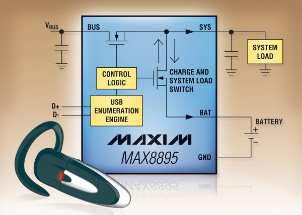 Maxim推出線性電池充電器MAX8895,器件適用于符合USB電池充電規(guī)范(1.1版本)的Bluetooth®耳機和便攜設備。MAX8895獨特地集成了自動適配器檢測功能,可分辨USB設備、USB充電器和專用充電器。器件還具有USB枚舉功能,可自動與USB主機進行交互,無需處理器干預即可優(yōu)化充電電流。該功能無需使用單獨的微控制器和系統(tǒng)軟件,因而可提供業(yè)內(nèi)僅有的單機運行充電方案。