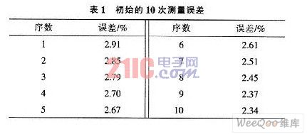 以200W的小型離網(wǎng)光伏系統(tǒng)為例,額定電壓24V,最大電流6.18A,蓄電池200Ah。設(shè)計正常放電時間為2~3d,0~6.18A的電流按比例轉(zhuǎn)換為0~5V的電壓,由2只電阻構(gòu)成的衰減器,輸出電壓放大比例由電阻R1和R2的比值決定,設(shè)定U/U轉(zhuǎn)換比例為5/24,則R7=10kΩ,R6+Rp2=48kΩ。根據(jù)電量計算公式Q=UIT,實驗時間為中午12時至下午2時,從顯示電量開始,每隔3min記錄一次實際功率和監(jiān)控系統(tǒng)所顯示的數(shù)據(jù),各次誤差均小于3%,表l給出初始的10次測量誤差情況,隨電量逐漸增大,誤差變化范圍逐漸縮小。