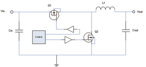 盡管本文所討論的原理適用于廣泛的電源設(shè)計(jì),但我們?cè)诖酥魂P(guān)注直流到直流的轉(zhuǎn)換器,因?yàn)樗膽?yīng)用相當(dāng)廣泛,幾乎每一位硬件工程師都會(huì)接觸到與它相關(guān)的工作,說(shuō)不定什么時(shí)候就必須設(shè)計(jì)一個(gè)電源轉(zhuǎn)換器。本文中我們將考慮與低電磁干擾設(shè)計(jì)相關(guān)的兩種常見(jiàn)的折中方案;熱性能、電磁干擾以及與PCB布局和電磁干擾相關(guān)的方案尺寸等。文中我們將使用一個(gè)簡(jiǎn)單的降壓轉(zhuǎn)換器做例子,如圖1所示。