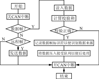 CAN總線的三層結(jié)構(gòu)模型為:物理層、數(shù)據(jù)鏈路層和應(yīng)用層。其中物理層和數(shù)據(jù)鏈路層的功能由SJA1000完成,系統(tǒng)的開發(fā)主要在應(yīng)用層軟件的設(shè)計(jì)上,它主要由三個(gè)子程序:初始化子程序、發(fā)送數(shù)據(jù)和接收數(shù)據(jù)程序。同時(shí),還包括一些數(shù)據(jù)溢出中斷以及幀出錯(cuò)的處理。