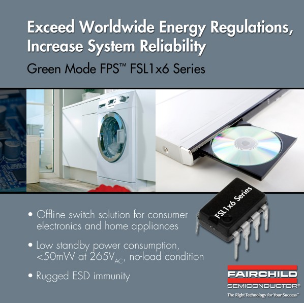 FSL1x6 系列器件包含集成式高壓功率開(kāi)關(guān)調(diào)節(jié)器,將內(nèi)部耐雪崩SenseFET (650V)和電流模式PWM控制模塊結(jié)合在一起,因而是VCR、機(jī)頂盒、DVD和DVCD播放器、家用電器和LED照明,以及適配器等產(chǎn)品中的開(kāi)關(guān)電源的理想選擇。