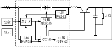 較為完整的ITPM一般由電力晶閘管,移相觸發(fā)器,軟件控制的單片機(jī),電流、電壓、溫度傳感器以及操作鍵盤(pán),LED或LCD顯示等部分組成。如圖1所示。