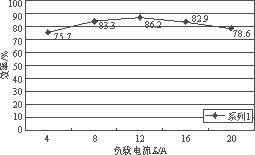 所以,在兩個(gè)原邊開(kāi)關(guān)管都處于斷態(tài)期間內(nèi),其中一個(gè)同步整流管的體二極管必須導(dǎo)通進(jìn)行續(xù)流。由于此時(shí)的負(fù)載電流不大,體二極管上的功率損耗也不明顯。隨著負(fù)載的加大,原邊的振蕩會(huì)逐漸增大,直到能夠開(kāi)通副邊同步整流管。圖4所示的是負(fù)載電流Io=20A時(shí)的變壓器原邊電壓波形以及兩個(gè)同步管驅(qū)動(dòng)波形。當(dāng)原邊開(kāi)關(guān)管關(guān)斷時(shí),存在于漏感中的能量足夠以開(kāi)通兩個(gè)同步管。然而同步管的關(guān)斷只能通過(guò)外加驅(qū)動(dòng)信號(hào)來(lái)實(shí)現(xiàn)。它們分別來(lái)自于原邊開(kāi)關(guān)管的門(mén)極驅(qū)動(dòng)vg1和vg2。圖5是測(cè)得的變流器的效率曲線圖。