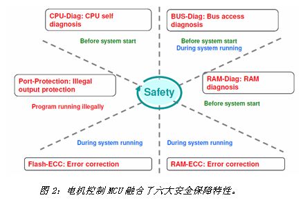 作為新能源汽車的核心部件。電機(jī)控制不僅關(guān)系著整車性能還與行車安全息息相關(guān)。在富士通的電機(jī)控制MCU設(shè)計中充分考慮了安全特性,通過6大安全機(jī)制來保證系統(tǒng)運(yùn)行的安全可靠,包括:在系統(tǒng)啟動前進(jìn)行MCU的自我診斷、總線自診斷、RAM的自診斷;程序非法運(yùn)行時非法輸出端口保護(hù);系統(tǒng)運(yùn)行期間進(jìn)行總線診斷、RAM錯誤糾正、閃存錯誤糾正。據(jù)透露,富士通在未來的產(chǎn)品計劃中,還將增加核心MCU的冗余設(shè)計(例如雙核或多核)以實現(xiàn)更強(qiáng)的系統(tǒng)保護(hù)。