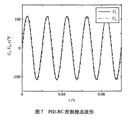 PID控制對于周期性信號無法做到無差跟蹤,存在周期性穩(wěn)態(tài)誤差。嵌人了重復(fù)控制器的系統(tǒng),輸出能夠很好地跟蹤輸入信號,系統(tǒng)迅速進(jìn)入穩(wěn)態(tài),表現(xiàn)出良好的動態(tài)性能。