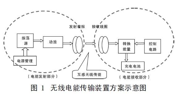 將直流電轉(zhuǎn)換成高頻交流電,然后通過(guò)沒(méi)有任何有有線連接的原、副線圈之間的互感耦合實(shí)現(xiàn)電能的無(wú)線饋送?;痉桨溉鐖D1所示。