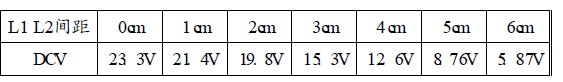 調(diào)RP2使其兩端電壓為4.15V,這就是鋰離子電池的充電終止電壓。改變L1與L2的間距,在0-6cm之間基準(zhǔn)電壓應(yīng)當(dāng)恒定為4.15V。