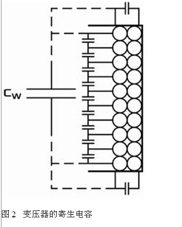 這些電容包括繞組間電容和層間電容,它們可以一起轉(zhuǎn)型為單一的電容CW,也是硬開關(guān)轉(zhuǎn)換器開關(guān)損耗的主要來源。