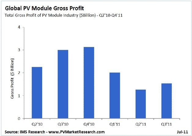 全球光伏組件毛利率(數(shù)據(jù)來源:IMS Research)