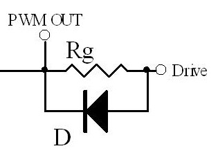 一般IC的PWM OUT輸出內(nèi)部集成了限流電阻,具體數(shù)值大小同IC的峰值驅(qū)動輸出能力有關(guān),可以近似認(rèn)為R=Vcc/Ipeak.一般結(jié)合IC驅(qū)動能力 Rg選擇在10-20Ω左右.