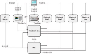 典型的AC/DC電源測試系統(tǒng)包含了程控交流電源、程控電子負載、高精度數(shù)字萬用表、數(shù)字示波器、多通道程控開關(guān)以及工控機和測試軟件。