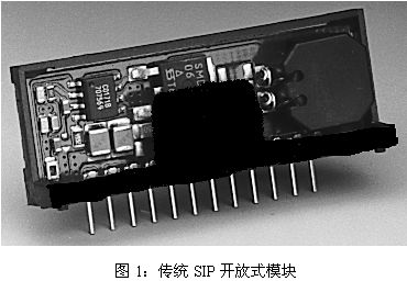 最傳統(tǒng)和最常見的非隔離式DC/DC電源模塊仍是單列直插(SiP)封裝,見圖1。這些開放框架的解決方案的確在減少設(shè)計復雜性方面取得了進展。然而,最簡單的是在印刷電路板上使用標準封裝的組件。這些組件是典型的低頻率設(shè)計(大約為300kHz),其功率密度不是恒定的。因此,其尺寸使之難以為許多空間受限的應(yīng)用所接受。下一代電源模塊需要在減少的外形規(guī)格(form factor)方面取得重大進展,以提高設(shè)計的靈活性。