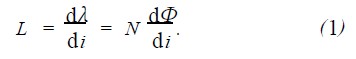 λ為線圈磁鏈;N為線圈匝數(shù);i為流經(jīng)線圈的電流;Φ為線圈磁通。如果式(1)兩端以時(shí)間t為變量進(jìn)行微分計(jì)算,可得: